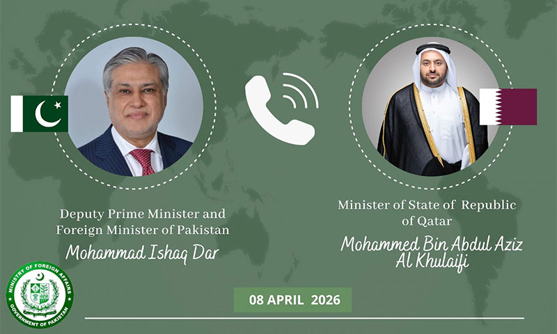 نائب وزیراعظم و وزیرِ خارجہ محمد اسحاق ڈار نے آج قطر کے وزیرِ مملکت، محمد بن عبدالعزیز الخلیفی سے ٹیلیفون پر بات چیت کی۔