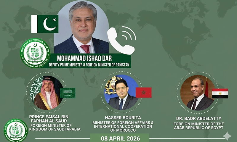 نائب وزیر اعظم و وزیر خارجہ نے مراکش، سعودی عرب، مصر اور ترکیہ کے وزرائے خارجہ سے علیحدہ علیحدہ ٹیلیفونک گفتگو کی۔