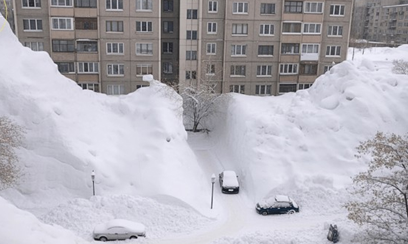 روس کے جزیرے کامچاٹکا میں 60 سال کی بدترین برفباری، گاڑیاں اور عمارتیں دب گئیں