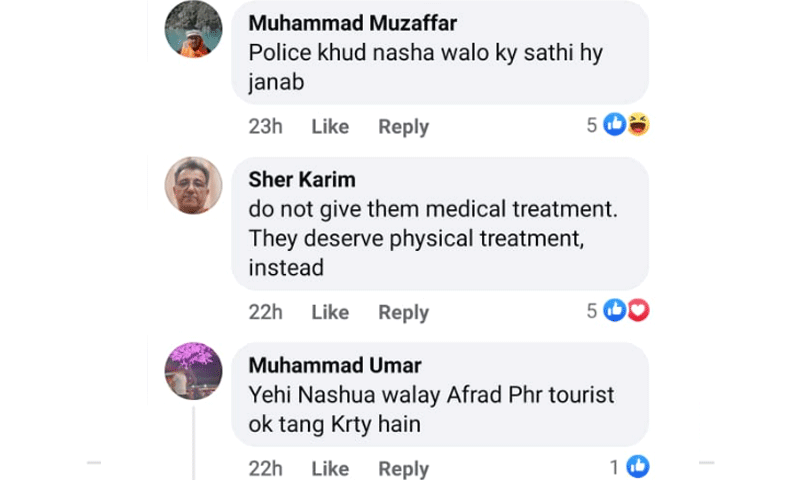 ایک اور صارف محمد مظفر نے لکھا ہے کہ پولیس خود منشیات والوں کی ساتھی ہوتی ہے ان پر کیا بھروسہ۔