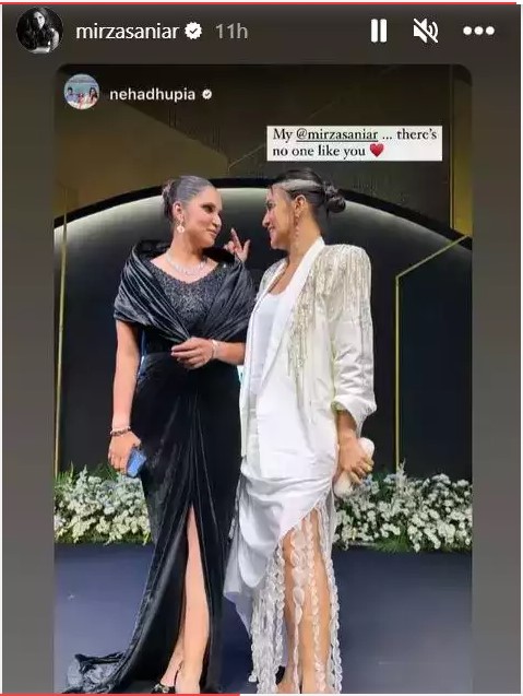 بھارتی اداکارہ نہیا دھوپیا نے ثانیہ مرزا کے ساتھ تصویر شئیر کرتے ہوئے لکھا کہ ان کے جیسا کوئی بھی نہیں ہے۔