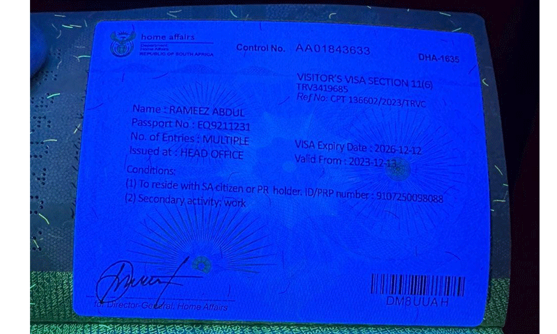 ابتدائی تفتیش کے مطابق ملزم عبدالرمیز ای ویزے پرجنوبی افریقہ گیا تھا، ملزم نے ایجنٹ سے 10 ہزار ساؤتھ افریقن رانڈ کے عوض ویزا حاصل کیا جو کہ جعلی نکلا۔