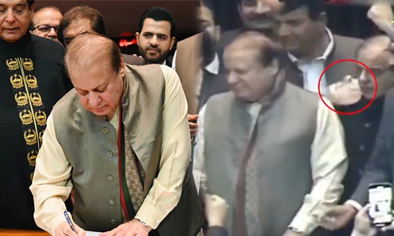 قومی اسمبلی میں دستخط کرتے وقت نواز شریف پر کسی غیرت مند نے خان کا ماسک پھینک کر دے مارا۔۔ pic.twitter.com/EVJH6to9Ak