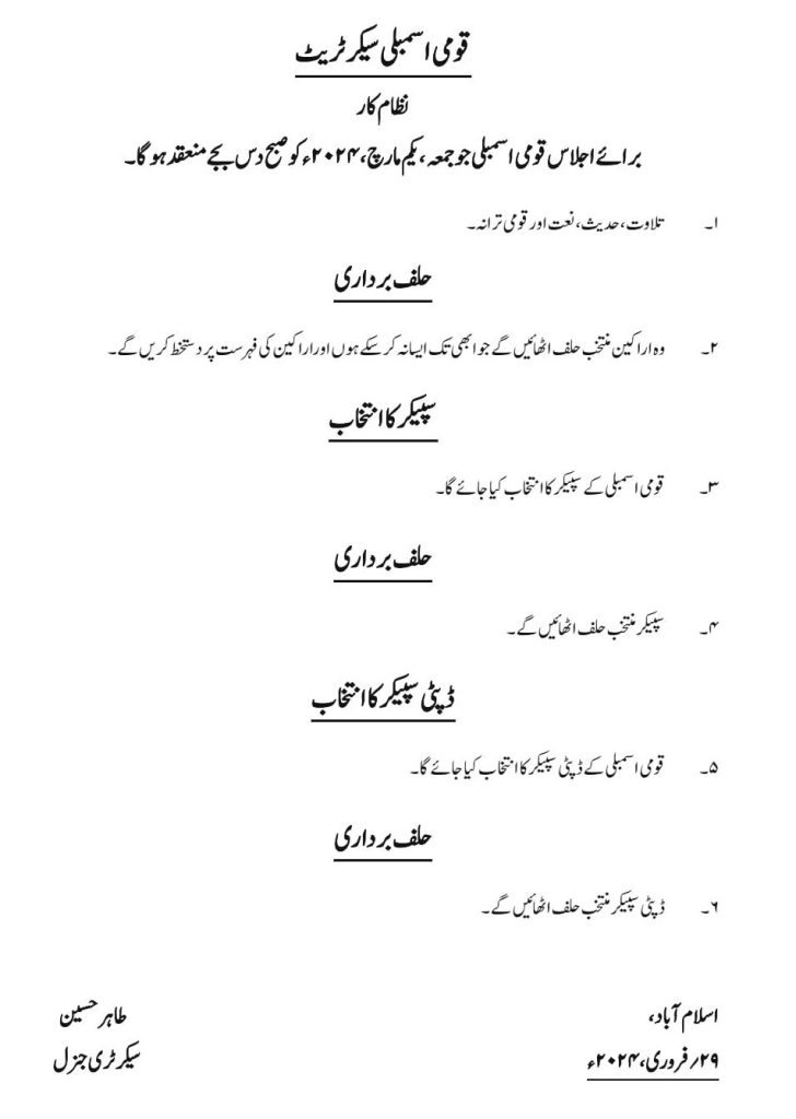 قومی اسمبلی سیکرٹریٹ کی جانب سے جاری وزیراعظم کے انتخابات کا شیڈول کے مطابق وزیراعظم کے لیے کاغذات نامزدگی ہفتہ 2 مارچ کو دن 2 بجے تک وصول کیے جائیں گے اور پھر کاغذات نامزدگی کی جانچ پڑتال 3 بجے تک ہوگی۔