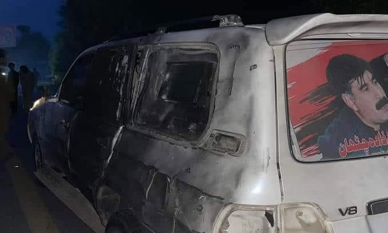 ڈپٹی سپرنٹنڈنٹ آف پولیس (ڈی ایس پی ) بخت منیر نے بتایا ہے کہ اخونزادہ چٹان کی گاڑی پر بم حملہ کیا گیا ہے تاہم وہ اس دھماکے میں محفوظ رہے جب کہ ان کی گاڑی کو بری طرح نقصان پہنچا ہے۔ اخونزادہ چٹان جلسے سے خطاب کے بعد واپس جا رہے تھے۔
