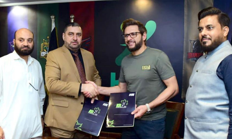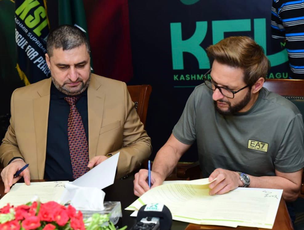 اسلام آباد میں واقع کشمیرسپریم لیگ (کے ایس ایل) کے ہیڈ آفس میں ایک پروقار تقریب منعقد ہوئی جس میں چیئرمین کشمیر سپریم لیگ مسعود احمد خان نے پاکستان کرکٹ ٹیم کے سابق کپتان شاہد خان آفریدی کے ساتھ کے ایس ایل کے برینڈ ایمبیسڈر کے طور پر خدمات انجام دینے کے لیے معاہدے پر دستخظ کیے۔