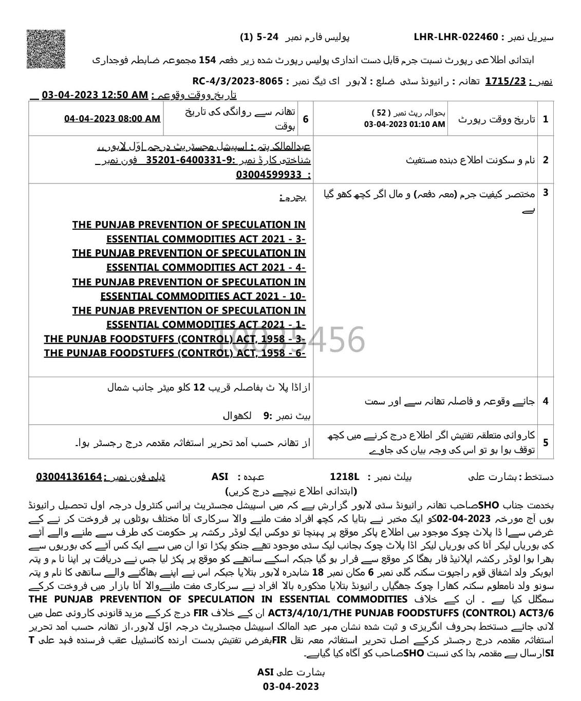 پولیس نے رائے ونڈ اور گجر پورہ میں 2 مقدمات درج کرکے 2 افراد کو گرفتار کیا ہے جبکہ رائے ونڈ میں ہی ایک ملزم آٹے کے تھیلوں سے بھرا ہوا رکشہ لے کر فرار ہوگیا۔