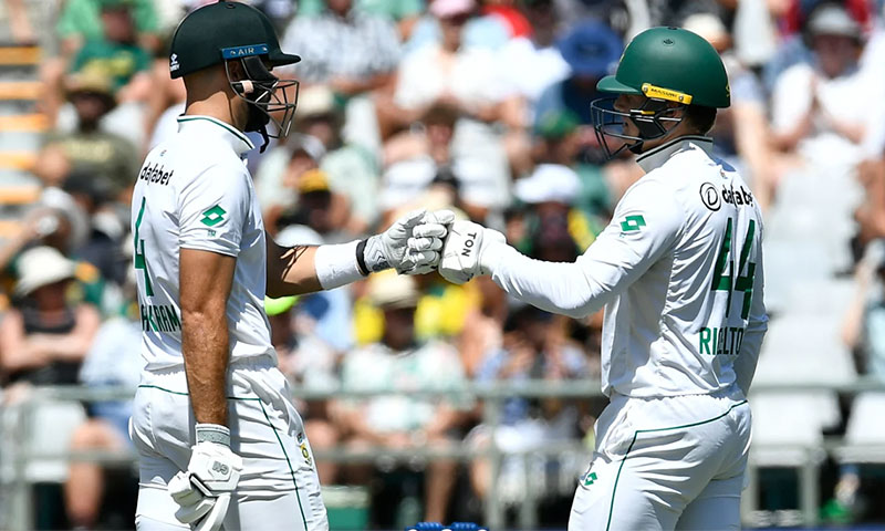 جمعہ کو نیولینڈز، کیپ ٹاؤن میں کھیلے جانے والے دوسرے ٹیسٹ میچ کے پہلے روز جنوبی افریقہ کے کپتان ٹیمبا باوما نے ٹاس جیت کر پہلے کھیلنے کا فیصلہ کیا، اگرچہ ابتدا میں جنوبی افریقہ کے 3 کھلاڑی یکے بعد دیگرے آؤٹ ہوئے تو ٹیم قدرے مشکلات کا شکار ہوئی تاہم ریان ریان رکیلٹن اور کپتان ٹیمبا باوما پاکستانی بولرز کے سامنے دیوار بن کر کھڑے ہو گئے، دونوں نے شاندار سینچریاں اسکور کیں۔