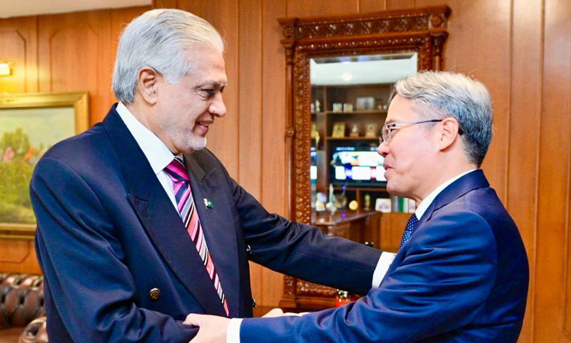 چینی سفیر جیانگ زائیڈونگ نے نائب وزیراعظم و وزیرخارجہ اسحاق ڈار سے ملاقات میں دونوں مُلکوں کے چہار موسمی تذویراتی شراکت داری کے بارے میں اپنے عزم کا اعادہ کیا جو دونوں ملکوں کے درمیان دوطرفہ تعلقات کا بنیادی نقطہ ہے۔