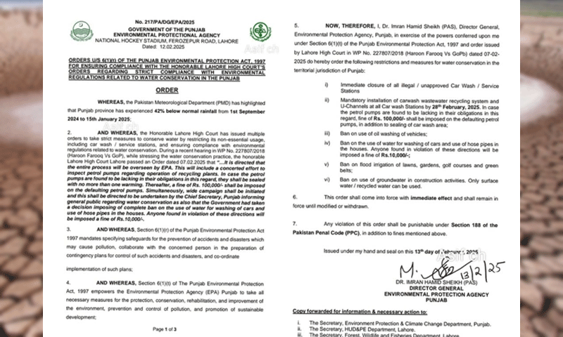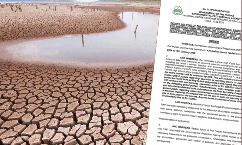 پنجاب میں بارشوں کی کمی کے باعث پانی کی قلت کا خدشہ پیدا ہوگیا ہے جس کے باعث محکمہ ماحولیات پنجاب نے سخت احکامات جاری کردیے ہیں۔