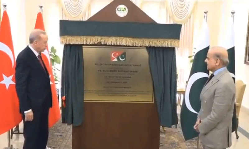 جمعرات کے روز وزیراعظم ہاؤس میں منعقدہ تقریب میں رجب طیب اردوان انٹرچینج کی تختی کی نقاب کشائی کی گئی، وزیراعظم شہباز شریف اور ترک صدر رجب طیب اردوان نے تختی کی نقاب کشائی کی۔