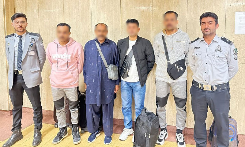 ایف آئی اے امیگریشن حکام نے کراچی ایئرپورٹ پر کارروائی میں سینیگال سے براستہ ایتھوپیا کراچی پہنچنے والے 5 مسافروں کو حراست میں لے لیا ہے، تمام مسافر یورپ جانے کے لیے انسانی اسمگلر سے رابطے میں تھے۔