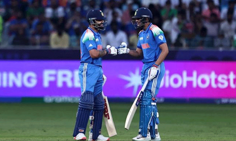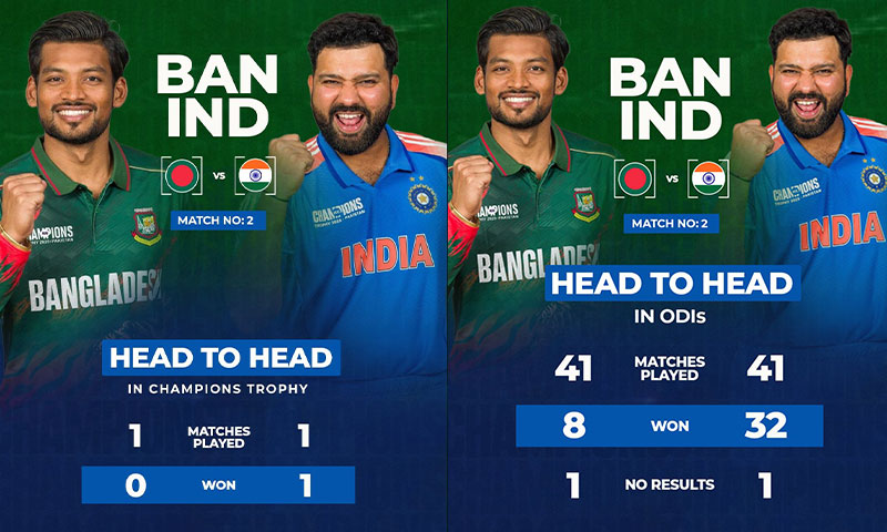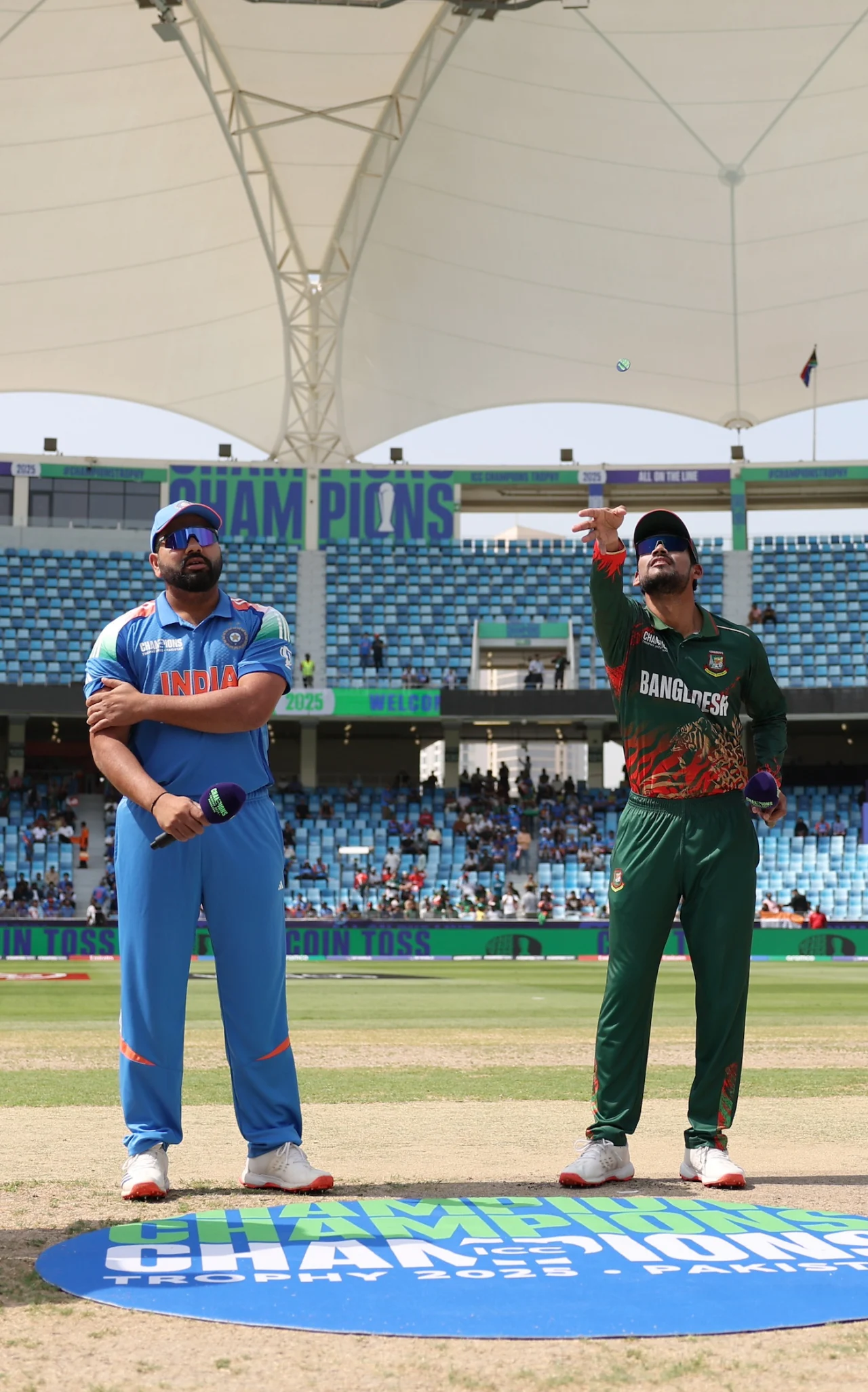 آئی سی سی چیمپئنز ٹرافی 2025 کے دوسرے میچ میں بنگلہ دیش نے بھارت کو جیت کے لیے 229 رنز کا ہدف دے دیا، ہدف کے تعاقب میں بھارت کی پہلی وکٹ 69 رنز پر گری، کپتان روہت شرما 41 رنز بنا کرآؤٹ ہوئے، بھارت کی جانب سے ویرات کوہلی 38 گیندوں پر 22 رنز، شہریار الیاس 17 گیندوں پر 15 رنز بنا کر آؤٹ ہوئے جبکہ اکثر پٹیل 8 رنز بناسکے۔