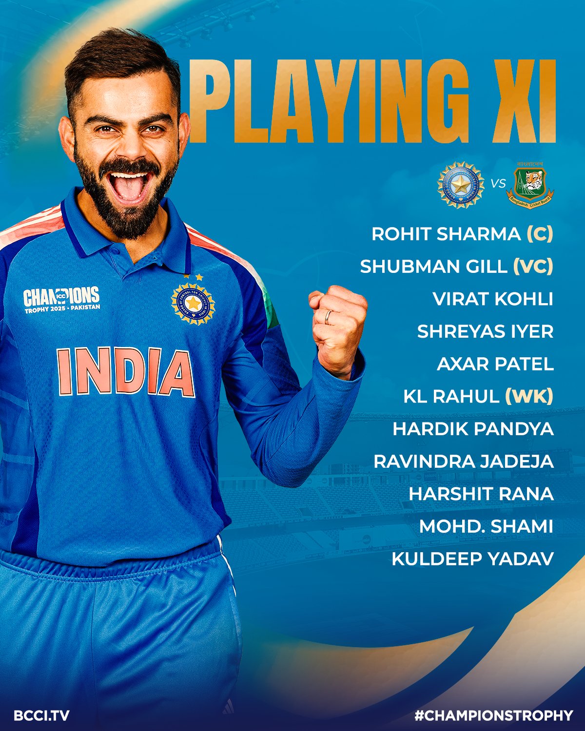 چیمپیئنز ٹرافی، بھارت نے بنگلہ دیش کو 6 وکٹوں سے شکست دے دی ہے۔