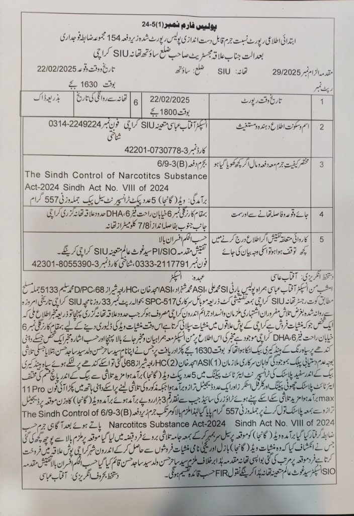 پولیس حکام کے مطابق تفتیشی ٹیم نے ڈیفنس کے مختلف علاقوں میں آپریشن کرتے ہوئے مشہور ٹی وی ادا کار ساجد حسن کے بیٹے سمیت 4 نوجوانوں کو حراست میں لے لیا ہے۔