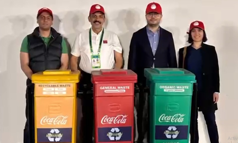 کوکا کولا نے اسٹریٹجک طور پر تمام میچ کے مقامات پر الگ الگ کچرے کے ڈبے رکھے اور ویسٹ مینجمنٹ کمپنیوں کے ساتھ تعاون کیا۔ ہمارے ملازمین نے 60 ہزار سے زیادہ پی ای ٹی بوتلوں کو جمع کرنے، چھانٹی کرنے اور ری سائیکل کرنے میں مدد کی۔