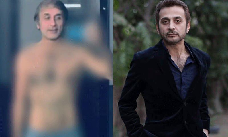 ویڈیو میں دیکھا جا سکتا ہے کہ فیصل رحمان ہاتھ میں موبائل تھام کر شیشے کے سامنے شرٹ کے بغیر صرف بلیو جینز پہنے کھڑے ہیں۔