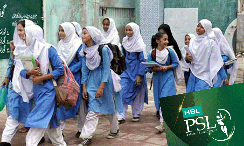 پی ایس ایل میچز کی وجہ سے ان 50 اسکولز کے اوقات تدریسی اب صبح 7 بجے سے 12 بجے تک ہوں گے۔ فیصلے کا اطلاق ایونٹ کے اختتام تک تمام سرکاری و نجی اسکولز پر ہوگا۔