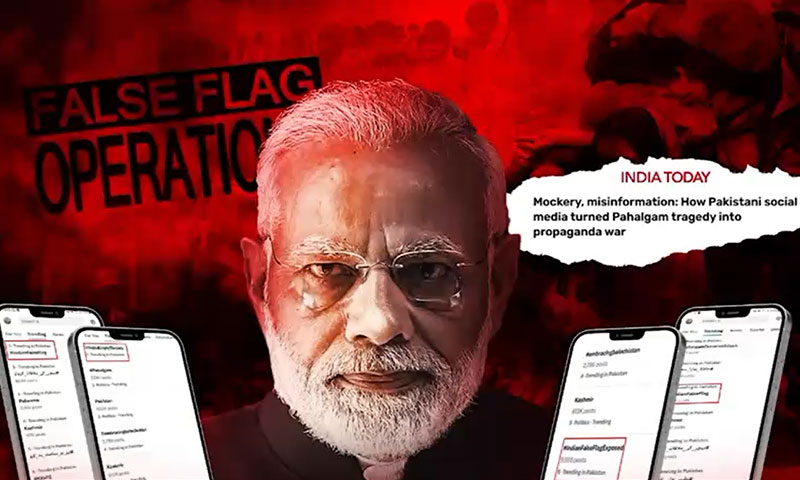 انڈیا ٹو ڈے کی رپورٹ کے مطابق انڈین فالس فلیگ، پہلگام ڈراما ایکسپوزڈ اور مودی ایکسپوزڈ سمیت مختلف ہیش ٹیگ نے تیزی سے مقبولیت حاصل کی، یہ مہم پاکستانی عوام کی شدت اور بھارت مخالف پروپیگنڈے کے مقصد کو ظاہر کرتی ہے۔