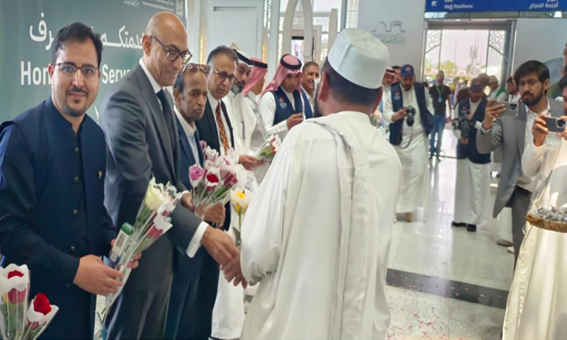 عازمین حج کے استقبال کے لیے سعودی عرب میں پاکستان کے سفیر فاروق احمد، ڈی جی حج عبدالوہاب سومرو ڈائریکٹر حج مدینہ منورہ ضیاء الرحمن قونصل جنرل پاکستان خالد مجید، سعودی طوافہ اور پاکستانی فضائی کمپنیوں کے نمائندے موجود تھے۔