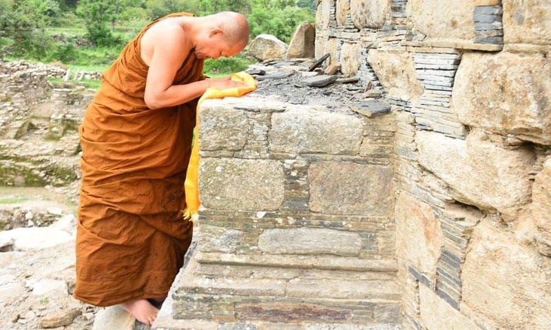 دنیا بھر میں بدھ مت کے ماننے والوں کے لیے ٹیکسلا میں موجود مقدس مقام ’دھرما راجیکا اسٹوپا‘ روحانی منظر کا گواہ بنا جب تھائی لینڈ اور سری لنکا سے تعلق رکھنے والے راہبوں نے یہاں خصوصی عبادات، بھجن خوانی اور دعائیں کیں۔ ان کا مقصد دنیا، خصوصاً جنوبی ایشیا میں امن و ہم آہنگی کے پیغام کو اجاگر کرنا تھا۔