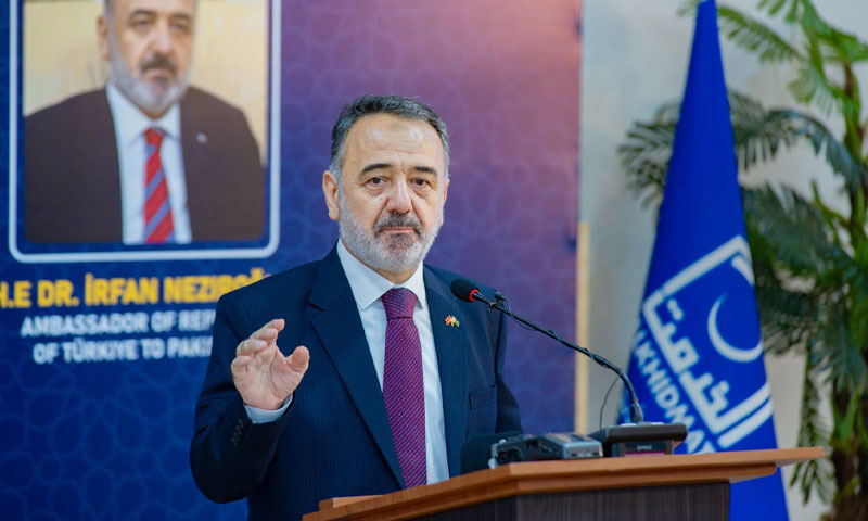 ترکیہ کے پاکستان میں سفیر ڈاکٹر عرفان نذیر اوغلو نے الخدمت کی خدمات کو سراہتے ہوئے کہا کہ پاکستان اور ترکیہ کے جھنڈے کی طرح ہمارے دل بھی ایک جیسے ہیں۔ انہوں نے الخدمت کے ساتھ فلاحی میدان میں تعاون کو وسعت دینے کے عزم کا اظہار کیا، خاص طور پر نوجوان نسل کو ایک دوسرے کے قریب لانے کے لیے مشترکہ منصوبوں پر کام کرنے کی خواہش ظاہر کی۔