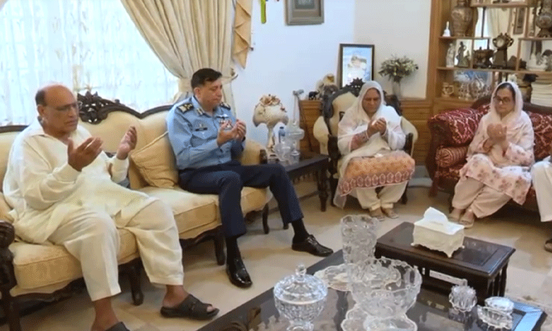 پاک فضائیہ کے سربراہ کی اسکواڈرن لیڈر عثمان یوسف شہید کے گھر آمد، لواحقین سے تعزیت