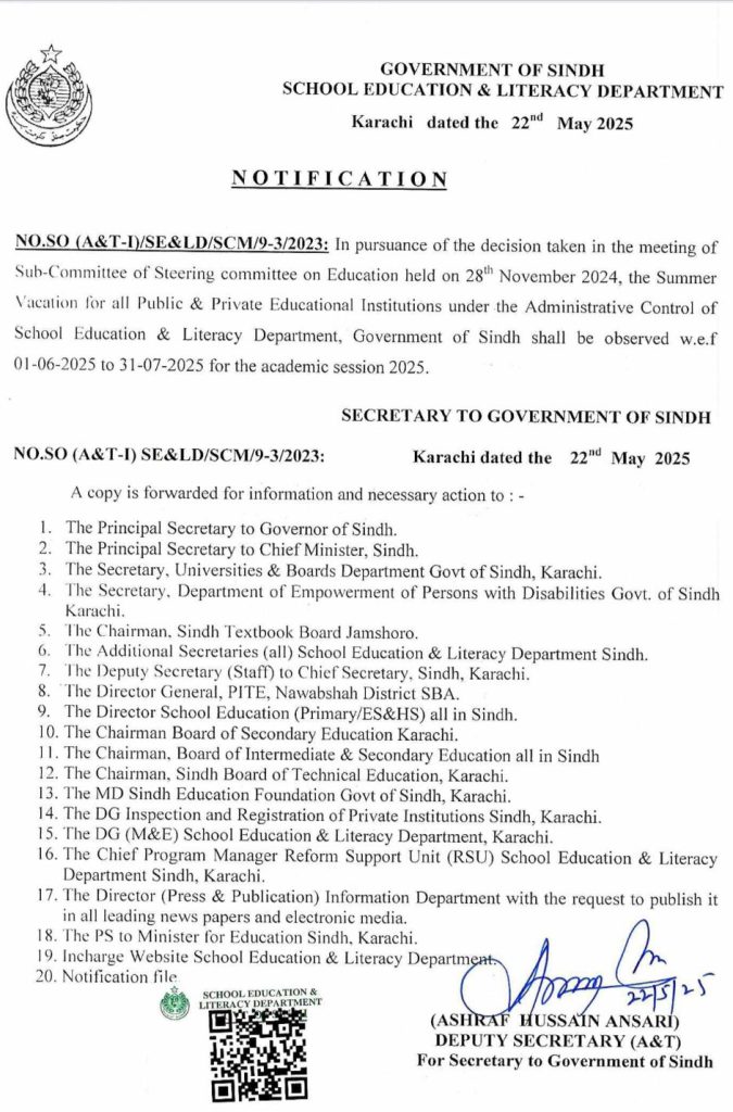 پنجاب اور خیبرپختونخوا کے بعد سندھ  میں بھی موسم گرما کی تعطیلات کا اعلان کردیا گیا ہے۔