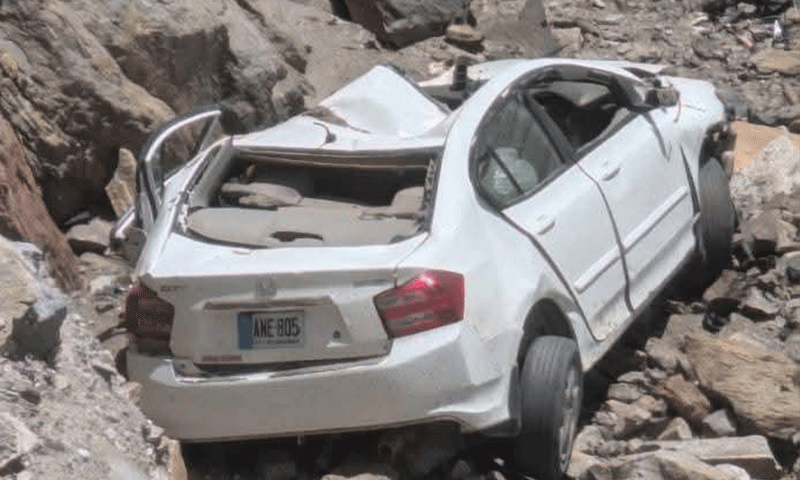 ابتدائی اطلاعات کے مطابق حادثے کا شکار ہونے والی سفید رنگ کی ہونڈا سٹی (رجسٹریشن نمبر: ANE 805، اسلام آباد) دُشوار گزار پہاڑی علاقے میں ملی ہے۔