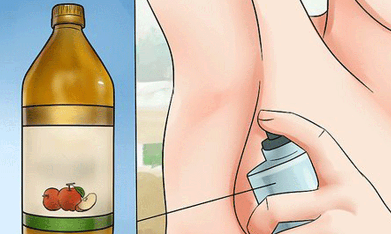 سیب کا سرکہ: اینٹی بیکٹیریل اثر رکھتا ہے، روئی سے بغلوں پر لگائیں۔