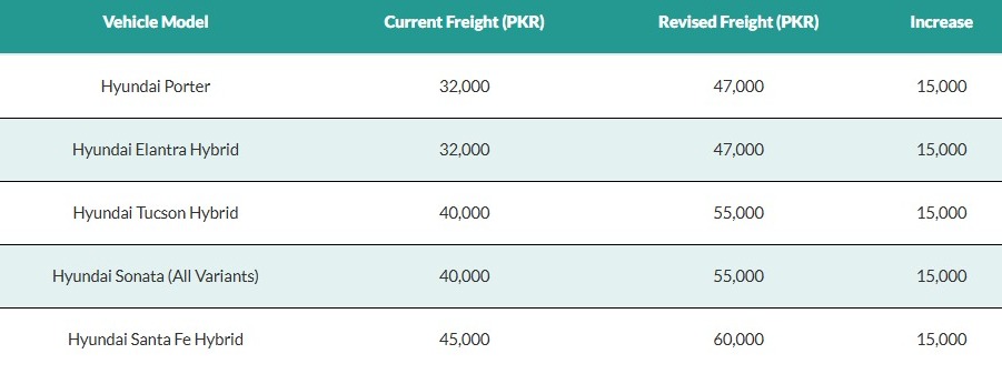 اس تبدیلی کا اثر ہنڈائی کی مشہور ترین گاڑیوں پر بھی پڑے گا جن میں ہنڈائی پورٹر، ایلانٹرا ہائبرڈ، ٹوسان ہائبرڈ، سونٹا اور سانتا فی ہائبرڈ شامل ہیں۔ ان تمام ماڈلز پر اب مزید 15 ہزار روپے کا فریٹ چارج لاگو ہوگا۔