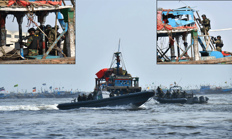 پاک بحریہ نے پاکستان کی تمام بڑی بندرگاہوں پر غیر روایتی خطرات سے نمٹنے پر توجہ مرکوز کرتے ہوئے 2 روزہ مشقوں کا کامیابی سے انعقاد کیا۔