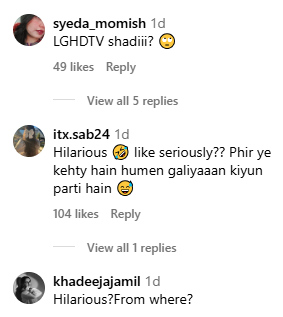 ایک سوشل میڈیا صارف نے کہا کہ پھر یہ کہتے ہیں ہمیں گالیاں کیوں پڑتی ہیں۔ سیدہ مومش نے سوال کیس کہ کیا یہ ہم جنس پرستوں کی شادی ہے؟