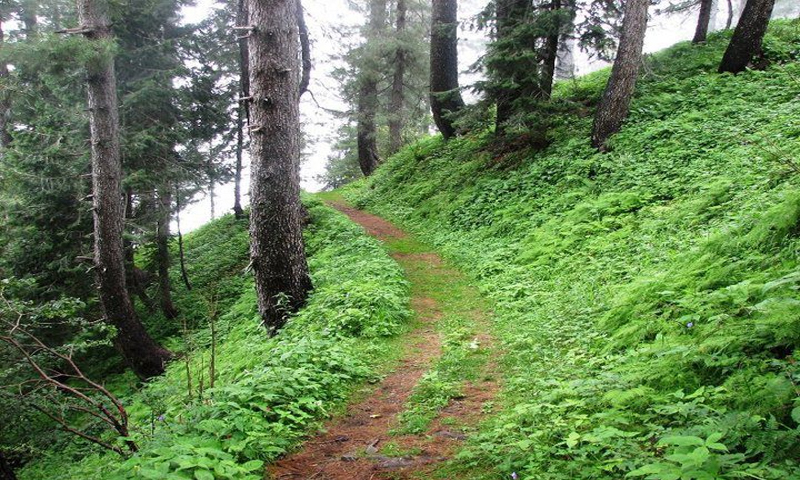 خیرا گلی سے نیچے جنگلاتی ٹریک