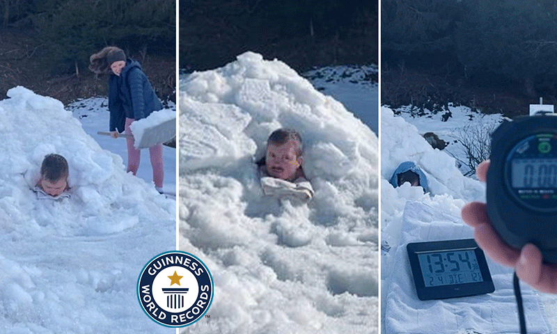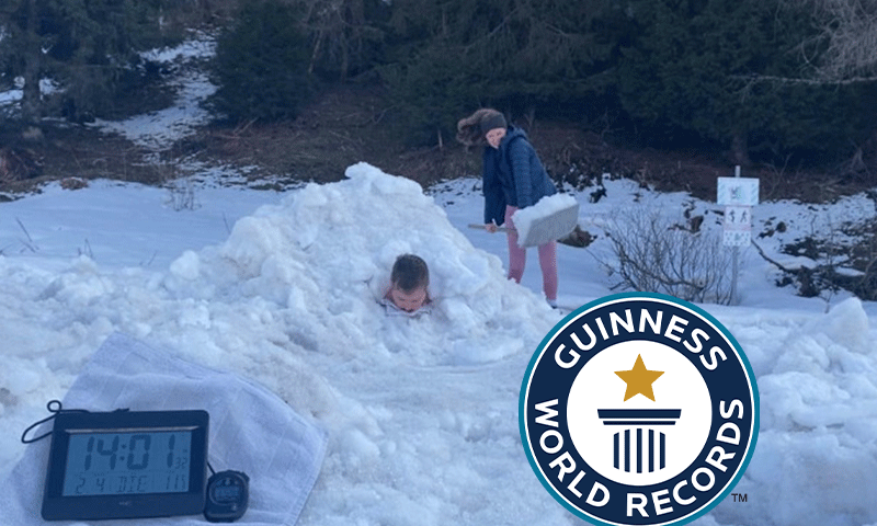 گنیز ورلڈ ریکارڈز کے مطابق سوئس پاورلفٹر ایلیس مائر نے نہایت سرد موسم میں صرف سوئمنگ ٹرنک پہن کر تقریباً 2 گھنٹے تک برف میں دفن رہ کر تاریخ رقم کر دی۔