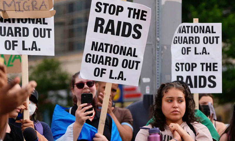 امریکا میں وفاقی امیگریشن حکام کی جانب سے غیر قانونی تارکین وطن کے خلاف بڑے پیمانے پر چھاپوں کے بعد پورے ملک میں مظاہروں کا سلسلہ پھیل گیا ہے۔