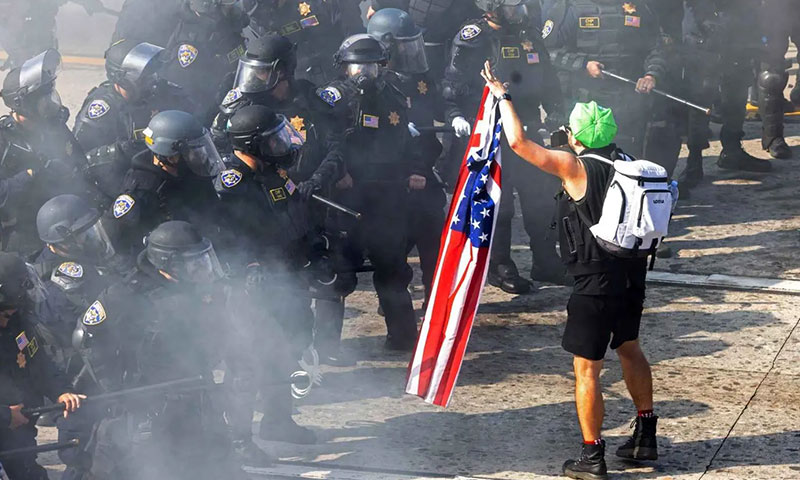 دوسری جانب، صدر ڈونلڈ ٹرمپ نے ان مظاہروں کو قابو میں لانے کے لیے ہزاروں فوجی اور میرینز کو تعینات کر دیا ہے، جس پر کئی ریاستی رہنماؤں نے تحفظات کا اظہار کیا ہے۔