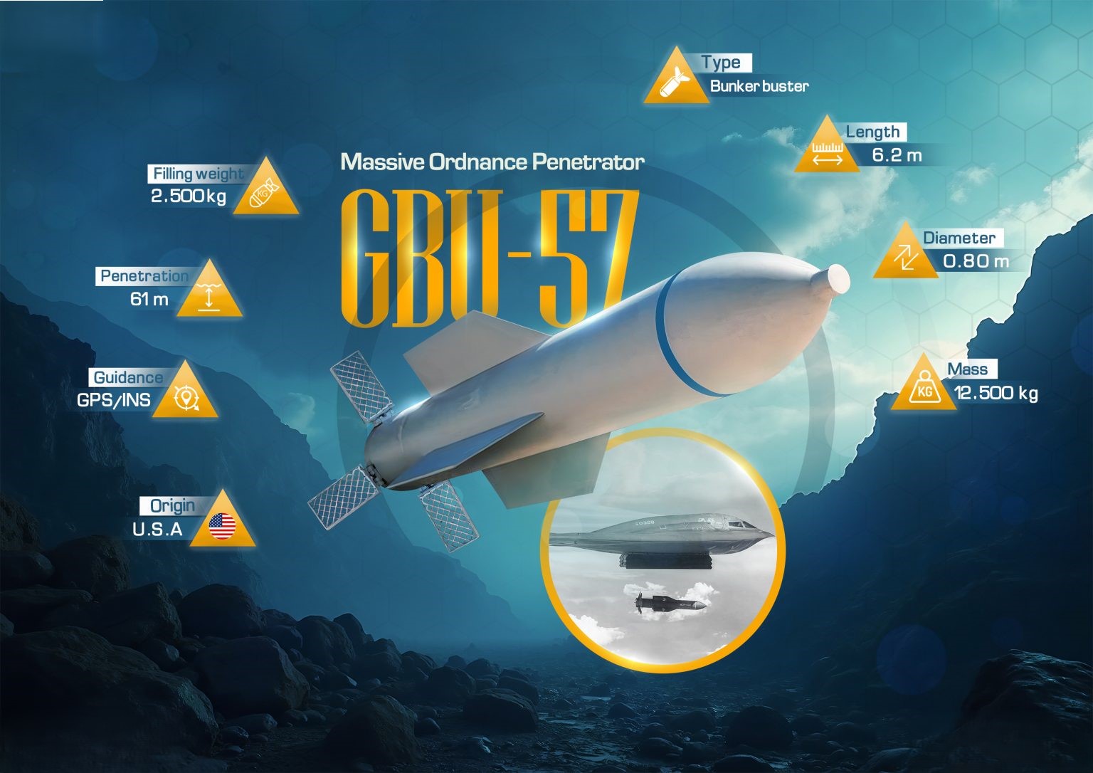 امریکی فضائیہ کے مطابق یہ بم قریباً 13,600 کلوگرام وزنی اور جدید رہنمائی نظام سے لیس ہے، جو زمین کے نیچے موجود سخت اور گہرے بنکروں اور سرنگوں کو نشانہ بنانے کے لیے تیار کیا گیا ہے۔