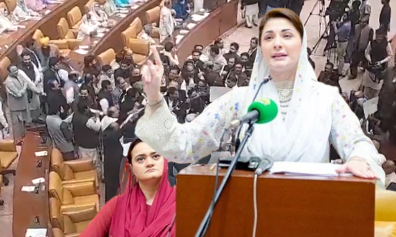اسپیکر پنجاب اسمبلی کی ایوان میں اس وارننگ کے بعد ،وزیر اعلی پنجاب مریم نواز نے بجٹ مکمل ہونے پر اپنی تقریر شروع کی ،تو اپوزیشن نے ایوان کے اندر نعرے لگانے شروع کردیے کہ ’کون بچائے گا پاکستان، عمران خان عمران خان‘، کے نعرے لگانے شروع کردیے، پھر اپوزیشن کے ارکان اسمبلی نے اپنی سیٹوں سے اٹھ کر وزیراعلیٰ مریم نواز کے سامنے پلے کارڈ اٹھا کر احتجاج کرنا شروع کردیا ،اپوزیشن نے وزیر اعلی پنجاب کی تقریر کے دوران خوب شور شرابا کیا