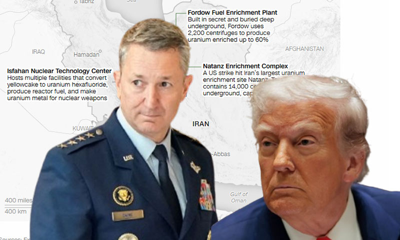سی این این کے مطابق امریکی جوائنٹ چیفس آف اسٹاف کے سربراہ جنرل ڈان کین کی جانب سے سینیٹرز کو بریفنگ کے دوران کیا گیا یہ انکشافاتی بیان، جسے 3 عینی سامعین اور ایک بریفنگ حاصل کرنے والے شخص نے بیان کیا، ایران کے مرکزی علاقے اصفہان میں واقع جوہری تنصیب پر بڑے پیمانے پر بنکر بسٹر بم استعمال نہ کرنے کی پہلی معروف وضاحت قرار دیا جا رہا ہے۔
