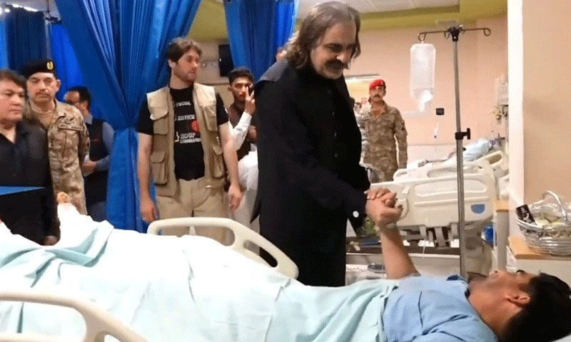 وزیر اعلیٰ خیبر پختونخوا علی امین خان گنڈاپور نے سی ایم ایچ پشاور کا دورہ کرکے گزشتہ دنوں شمالی وزیرستان میں خودکش حملے میں زخمی ہونے والے سیکیورٹی اہلکاروں کی عیادت کی۔