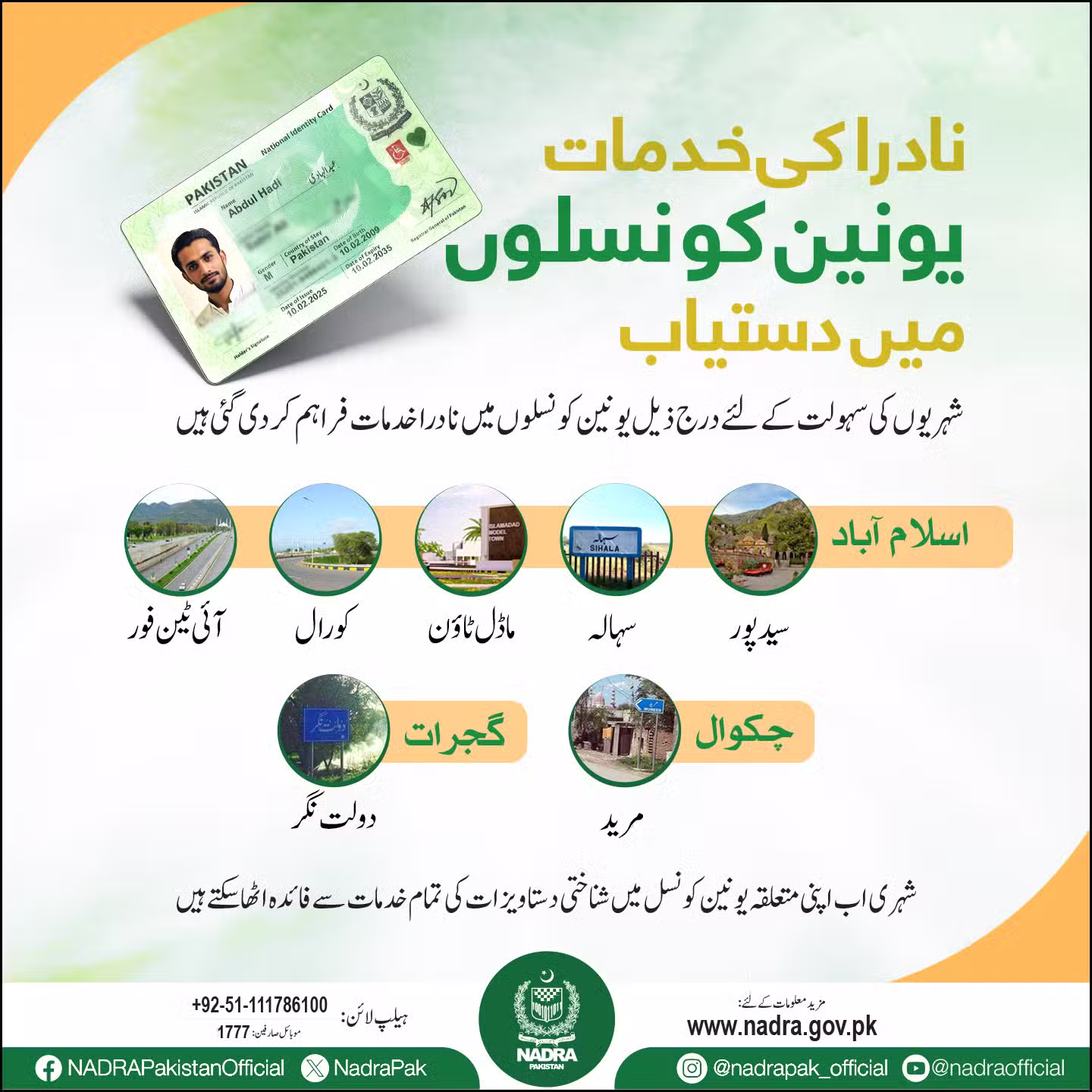 نیشنل ڈیٹابیس اینڈ رجسٹریشن اتھارٹی (نادرا) نے عوام کی سہولت کے لیے اہم قدم اٹھاتے ہوئے اپنی شناختی خدمات مقامی یونین کونسلز میں فراہم کرنا شروع کر دی ہیں، جس سے شہریوں کو نادرا دفاتر کے بار بار چکر لگانے سے نجات ملے گی۔