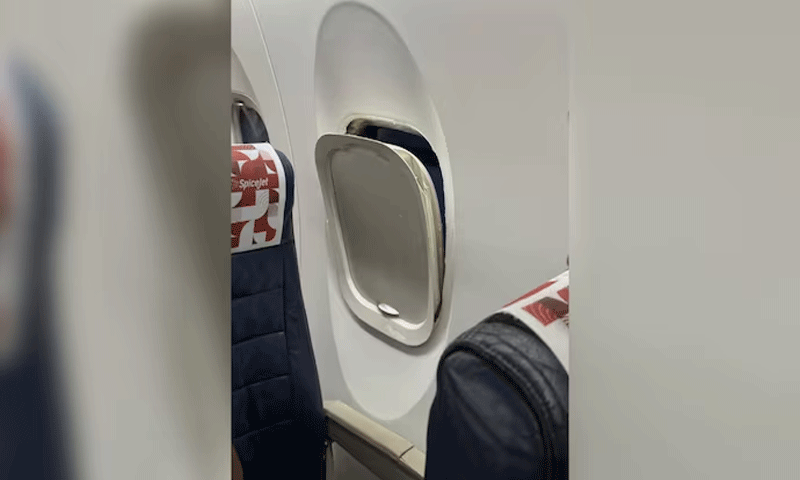 بھارتی میڈیا رپورٹس کے مطابق طیارے کی کھڑکی کا فریم نکلنے سے مسافروں میں خوف و ہراس پھیل گیا۔