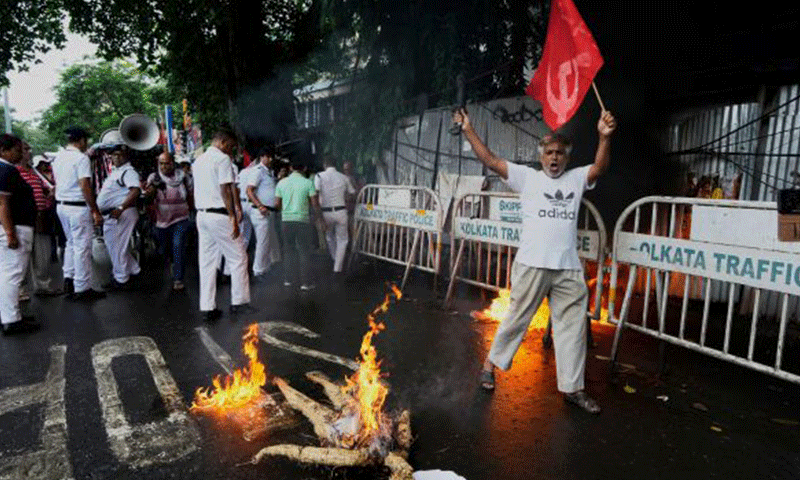 مظاہرین نے دہلی، کولکتہ اور ممبئی سمیت کئی شہروں میں نریندر مودی کی پُتلا نذر آتش کیا، ریلوے اسٹیشنوں پر احتجاج کیا اور ’ریلوے نہ بیچو‘ اور ’مزدوروں کے حقوق ختم نہ کرو” جیسے نعرے لگائے۔