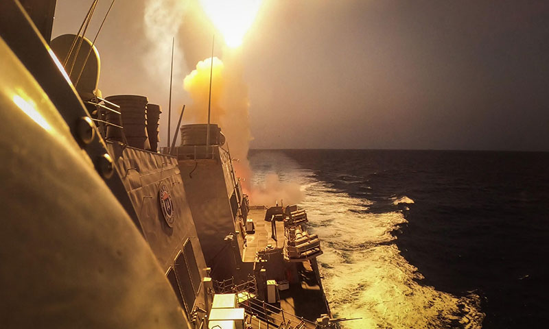 بیان کے مطابق یہ فوجی کارروائی ایک بغیر پائلٹ سمندری گاڑی اور 6 کروز و بیلسٹک میزائلوں کی مدد سے کی گئی۔