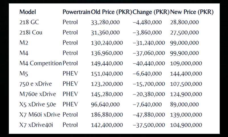 دیوان موٹرز نے پاکستان میں BMW کی تمام گاڑیوں کی قیمتوں میں نمایاں کمی کا اعلان کیا ہے۔ یہ اقدام وفاقی بجٹ 2025-26 میں کسٹم ڈیوٹی اور ٹیکس میں کمی کے بعد سامنے آیا ہے۔