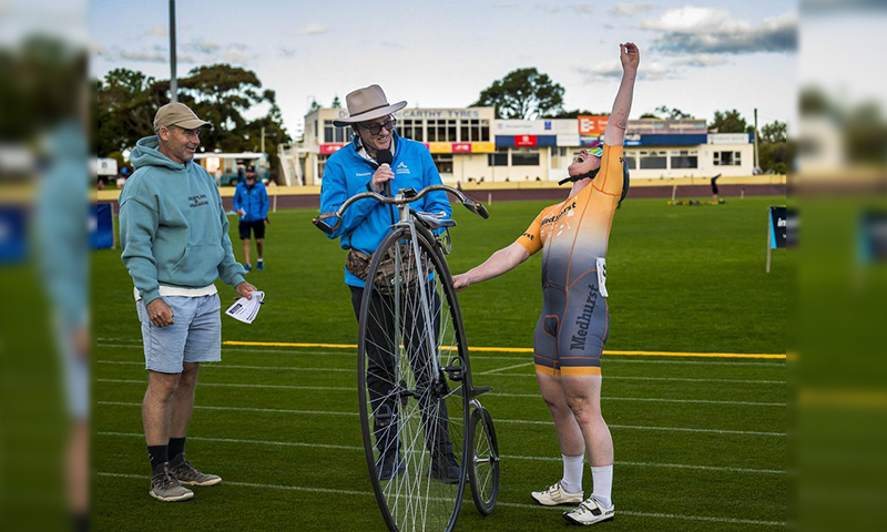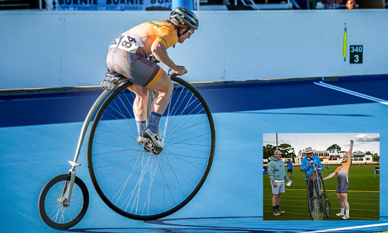 آسٹریلیا کے ایک ٹریک پر کینیڈا کی ایک خاتون نے بڑی پہیوں والی پرانی طرز کی سائیکل (پینی فارتھنگ) چلاتے ہوئے دو عالمی ریکارڈ قائم کر دیے۔