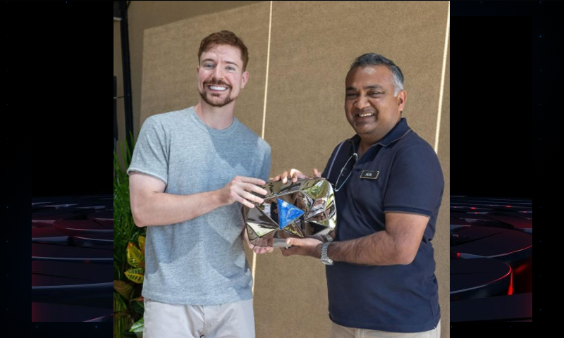 یہ اعزاز یوٹیوب کے چیف ایگزیکٹو نیل موہن نے خود پیش کیا، جنہوں نے جمی ڈونلڈسن سے ملاقات کے دوران یہ یادگار شیلڈ بطور تحفہ دی۔ پلے بٹن کا ڈیزائن ماضی کے ایوارڈز سے مختلف ہے، جسے نیلے رنگ کے کرسٹل، دھاتی فریم اور منفرد طرز میں تیار کیا گیا ہے۔ اگرچہ دنیا بھر میں اس کامیابی کو سراہا گیا، مگر پلے بٹن کے ڈیزائن پر سوشل میڈیا صارفین خدشات کا اظہار کررہے ہیں۔