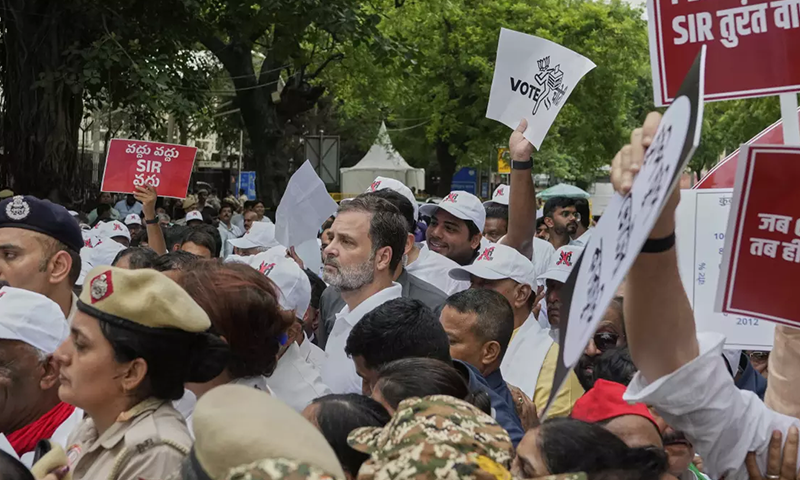 اس دباؤ کے باوجود، راہول گاندھی نے 11 اگست کو تقریباً 300 اپوزیشن ارکانِ پارلیمنٹ کی قیادت کرتے ہوئے نئی دہلی میں الیکشن کمیشن کے دفتر تک ایک بڑا احتجاجی مارچ کیا، پرامن مظاہرے کو پولیس کی رکاوٹوں اور گرفتاریوں کا سامنا کرنا پڑا، لیکن یہ اپوزیشن اتحاد کی ایک طاقتور علامت بن گیا، جو شفاف عدالتی تحقیقات اور آزادانہ و منصفانہ انتخابات کی ضمانت کا مطالبہ کر رہا ہے۔