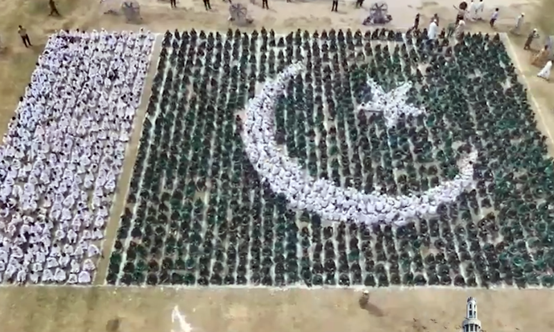 کئی روز کی محنت اور ریہرسل کے بعد سبز و سفید لباس میں ملبوس بچوں نے بھرپور قومی جذبے کے ساتھ یہ تاریخی انسانی پرچم مکمل کیا۔